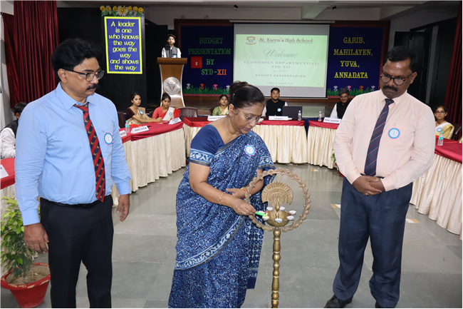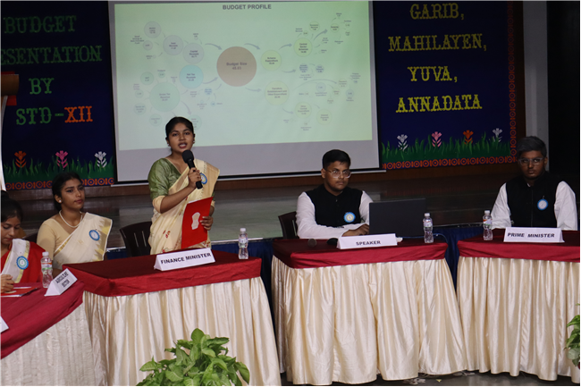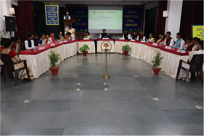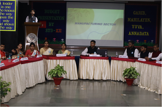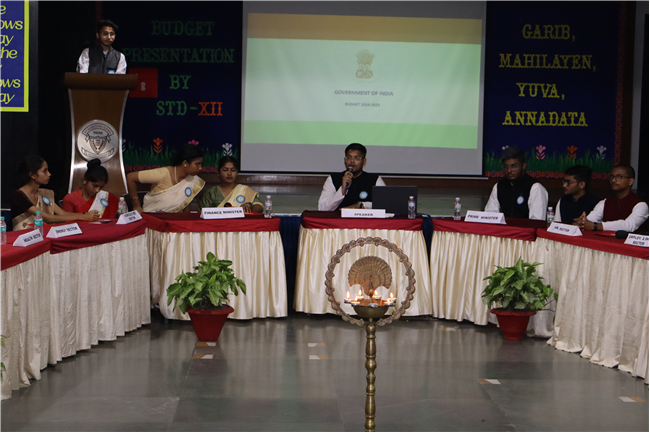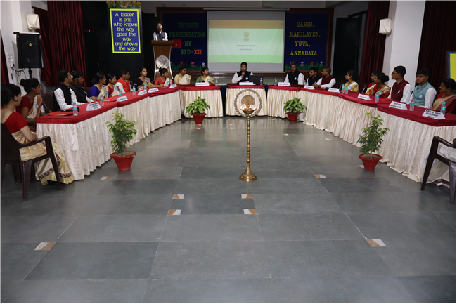 The students of commerce & humanities streams had dressed up as ministers of different sectors and presented the actual financial budget of 2024-25.