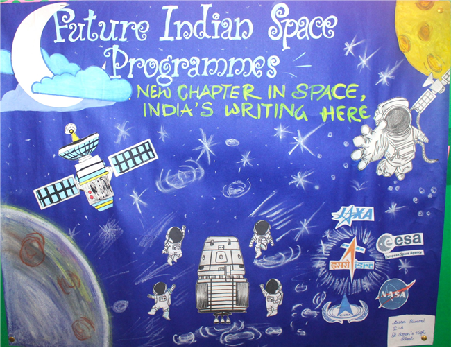 On August 23, 2024, St. Karen's High School's Art Room hosted a vibrant painting competition for students in Grades 6-10, celebrating India's space endeavors. The competition invited students to creatively depict India's achievements and future aspirations in space exploration, focusing on missions like Chandrayaan-3 and the forthcoming Mangalyaan-2. The students' artwork ranged from detailed illustrations of spacecraft and celestial scenes to abstract representations, showcasing their artistic talents and imaginative interpretations of India’s role in space.