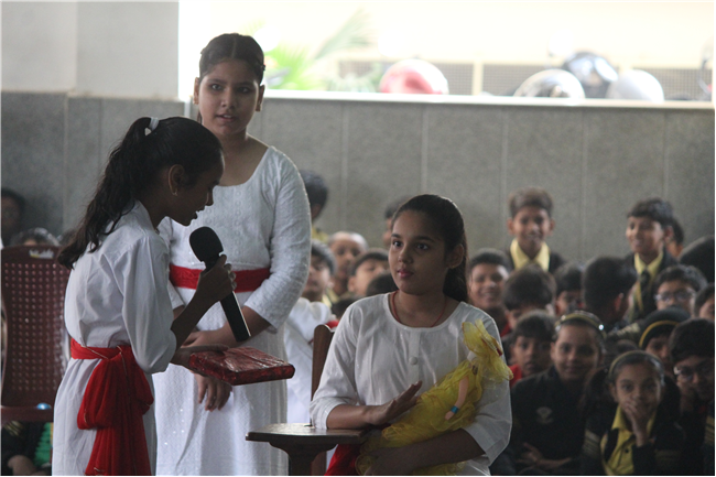 Nukkad natak competition was presented by the students of Std 5 on 29th of November, various issues were show cased like Child labour, Safety on road, Girl child and their education and Addiction of mobile phones. The main aim to choose these topics are to provide the insight to the children that what is going on in the society and also how to deal with them. Children presented their part with full confidence and energy. Winner of the competition was Std 5 A who presented the issue Girl child and their education.