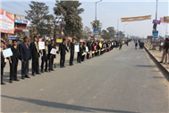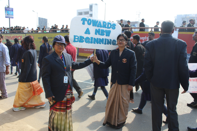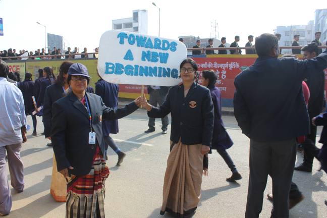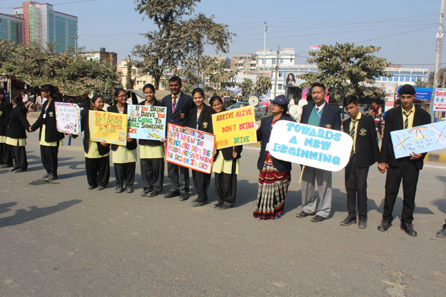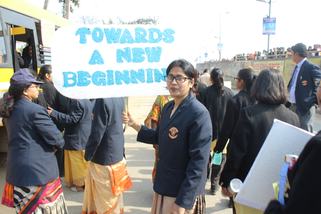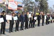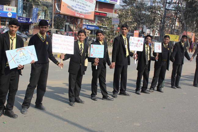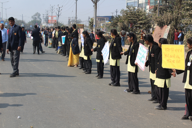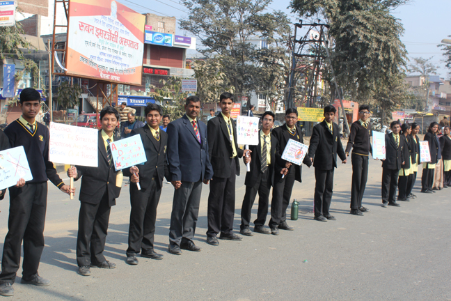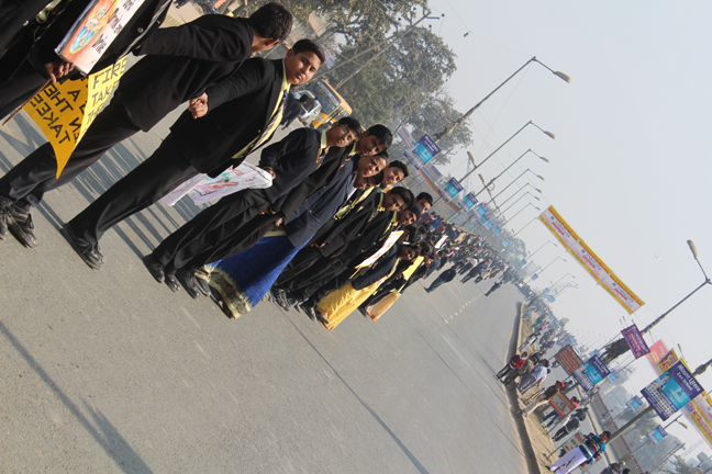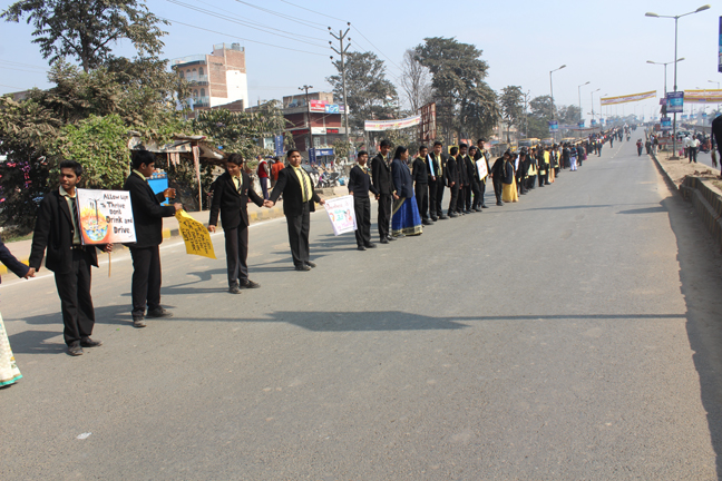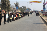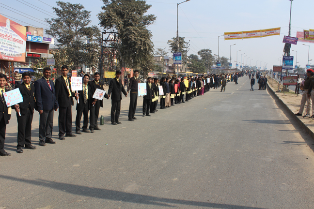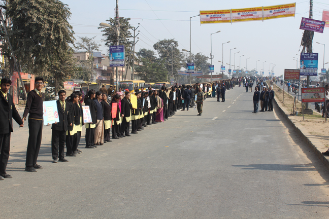 Description: Students of St.Karen's High School Participated in an historical event organised for spreading social awareness among the masses on benefits of liquor ban in the state of bihar. About 600 hundreds students and 130 teachers and staffs formed a human chain on 21st of January, 2017. They stood holding placards with slogans on the above topic. The event was widely covered by media and also satellite imaging was done by ISRO.