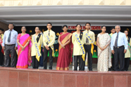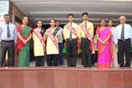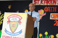 Description: This was the most auspicious celebration in the new session where the school formally entrusts the newly selected members of student council with their powers and positions. Miss Farah Kazim started the event with a speech welcoming the Director of the school Mr. D.P Galstaun, the principal Mrs. Seema Singh, the Vice-Principal Mrs. Anjana James, teachers and the students. The council members received their responsibilities with Oath.