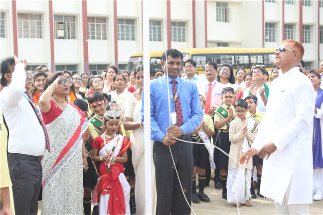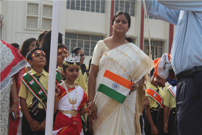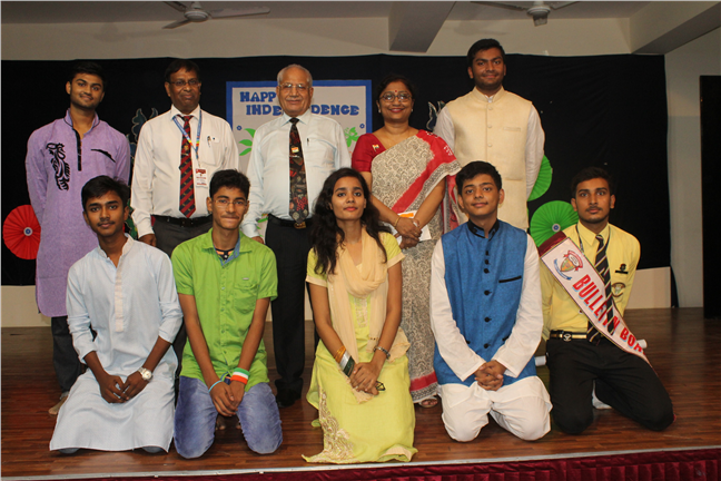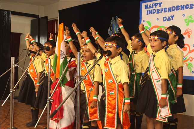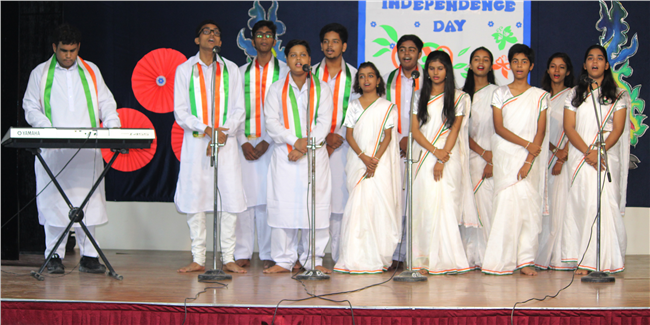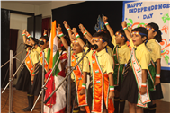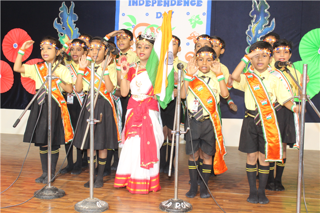 Description: The Independence Day Programme commenced with the flag hoisting by the school principal and vice principal at 8 am on the school play ground. It was followed by a commendable cultural programme performed by the students. The four houses presented patriotic songs which instilled the spirit of country love. The primary wing students presented songs and group dance which added to patriotic fervour. The audience was addressed and blessed by Director Sir's speech. The hall thundered with excitement when the Principal conducted a quiz for the parents, teachers and students. The programme ended with the vote of thanks proposed by the vice principal.