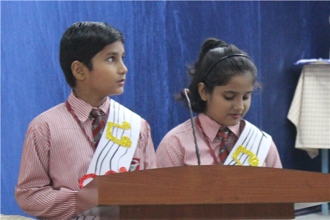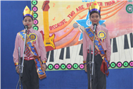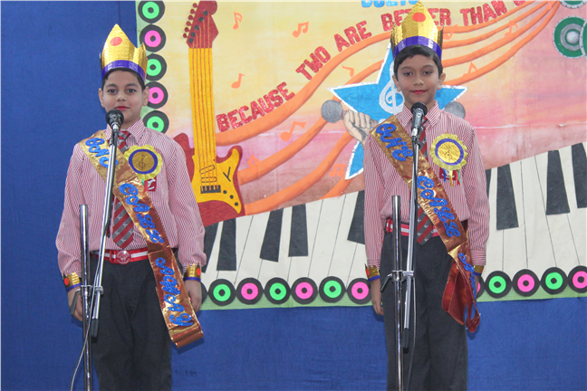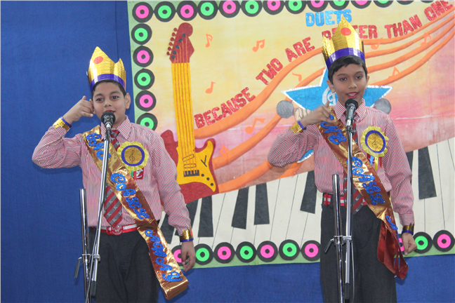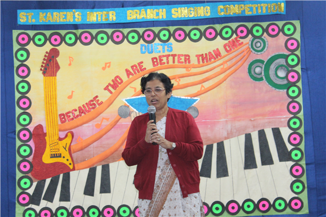 Description: An Inter School Duet Singing Competition was organised in St. Karen's Primary School on the 13th Nov,2017. All four schools ( St. Karen's Primary School, St. Karen's Secondary School, St. Karen's High School, St. Karen's Montessori School) participated in it and the children filled the air with their melodious singing to foot tapping beats. "The Chief Guest" for the occasion was Rev. Father Gregory Gomes and "The Guest Of Honor" was Sister Sophie. The song was based on inspirational songs from animated movies. The following students grabbed a position in the Group C Category: 1. Anushka Sinha- III (B). 2. Prachi - III (A).