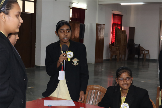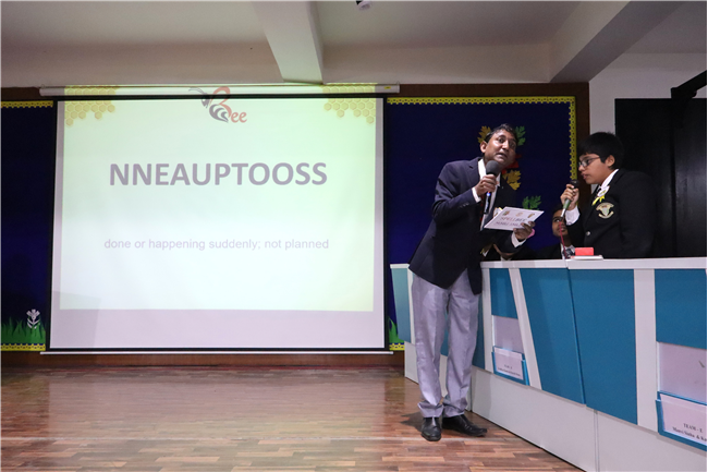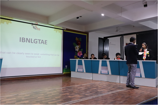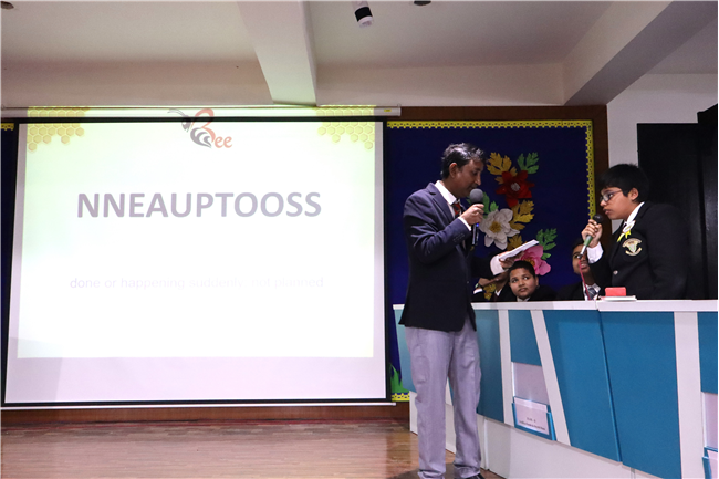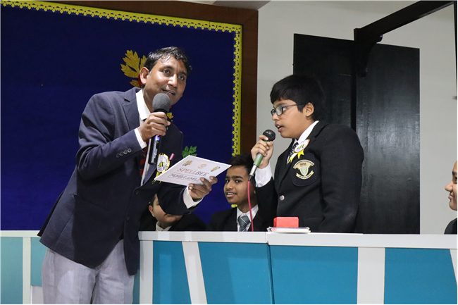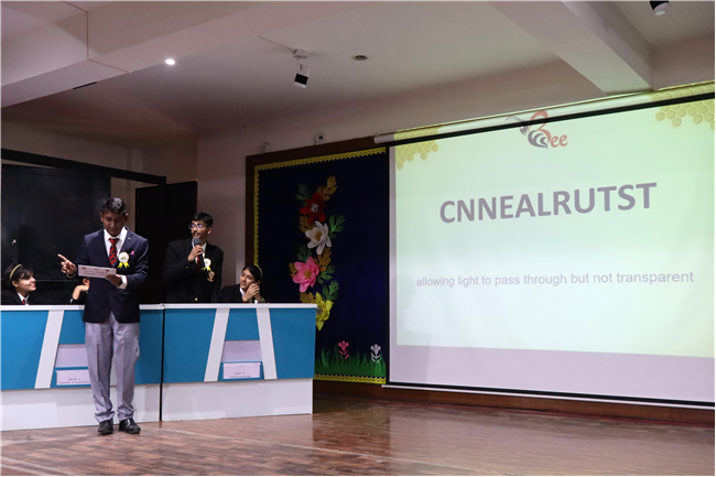 Description: Spell Bee Competition was organized on 6th Feb 2025 in the Pamela Hall for grade 8. Students of different sections participated eagerly in the competition. Their efforts and initiative was appreciated by one and all. This competition was one of the numerous enjoyable competitions that give students a platform to learn spellings in different ways. The result of the competition is as follows, First- Team B ( Archit and Sanskriti Jha) Second- Team D (Aradhya Kanak and Jayesh Rana) Third- Team A (Ishika Raj and Siwansh Kr.)