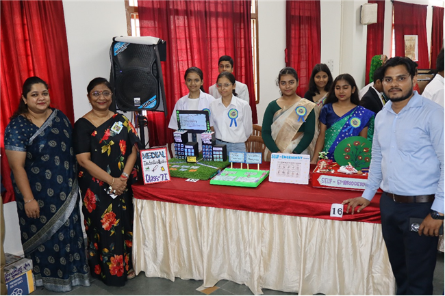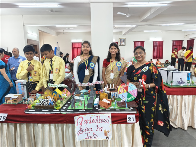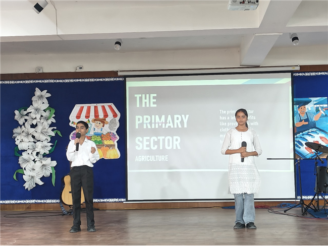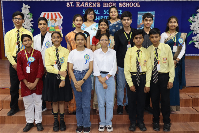 Description: St. Karen’s High School organized a dynamic and educational Social Science Exhibition based on the theme **“Markets around Us,”** bringing together the creative energies of students from Classes 5 to 8. The program began with a warm welcome address by the Vice Principal, Mr. Sanjay Joseph, setting a gracious tone for the occasion. This was followed by an enthusiastic musical performance by the school choir, who presented a lively song based on the theme of markets, energizing the audience and creating an atmosphere of excitement. Class-wise presentations offered a vivid journey through different aspects of the theme. Class 5 students highlighted the culture, dance, and architectural heritage of Madhya Pradesh. Their vibrant dance performance captivated the audience and reflected the rich traditions of the region. Class 6 focused on the Primary Sector, presenting detailed models of rural life and village fairs. Their work was especially appreciated for its precision and creativity, as every minute detail was thoughtfully showcased.Class 7 students depicted the Secondary Sector with well-constructed models representing various aspects of manufacturing and production. Meanwhile, Class 8 students explored the Tertiary Sector, illustrating the vital role of services in everyday life through innovative displays. The exhibition also featured game zones and puzzle stations that added an element of fun and learning, encouraging active participation from visitors and peers alike. The event concluded with a heartfelt vote of thanks delivered by the Coordinator, Subhadra Ma’am, who expressed her appreciation for the hard work and enthusiasm of the students and teachers. The exhibition was a successful blend of learning, creativity, and collaboration, leaving a lasting impression on all who attended.
