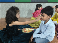 Description: Std. 1 and 2 students jointly organized a special assembly on Raksha Bandhan, celebrating the timeless bond between brothers and sisters. A symbolic thali was prepared where girls tied Rakhis, symbolizing the endearing relationship between siblings. On the eve of this auspicious festival the students from Std. 1-5 participated in rakhi making activity where the children made beautiful and colourful rakhis with a small message.