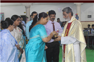 Description: The feast day of St. Karen's school was celebrated in the St. Karen's secondary school, Khagual campus. The entire St. Karen's family gathered to worship at a special Holy mass held on 27th April 2019. All the teachers and staff were decked in blue, the colour symbolic of sincerity, wisdom and faith. The prayers were dedicated to our patron St. Katherine of Siena who was an embodiment of wisdom. Revered Father Rev. Vincent S.J gave his blessings to the entire St.Karen's fraternity. The devotional singing by the choir added a divine touch to the celebrations. The school management, teachers and staff prayed in unison to receive the blessings of the almighty and the guiding spirit. The prayers were followed by a cultural dance performance by the teachers. The day was also marked by giving special awards to teachers for their exemplary dedication and hard work. The programme culminated with a sumptuous dinner .The entire ceremony encouraged everyone to work hard and offer dedicated service to the school and society.