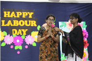 Description: Labour day has always been celebrated with the spirit to thank the backbone of the country who work relentlessly to keep the wheels of the nation rolling. To appreciate their efforts round-the-clock, St. Karen’s celebrated “May Day” with an illustrative fancy dress by the kids of std I and II. It was a pleasure to see the children dressed up in different characters. The children were dressed in appropriate costume according to the theme, Labours Day. To add to the celebrations, the tenthers presented a very unique skit ‘Neev’ which applauded the labours - the very foundation of our country. The performance was followed by some melodious songs recreated by our very own Thappa Ji. The function ended on an inspirational note with Director Sir’s motivational speech and the distribution of gifts as a token of appreciation to all the Support Staff. Kamlesh Ji and Vijay Thappa were felicitated for their dedication and hard work for the school with certificates and cash award.