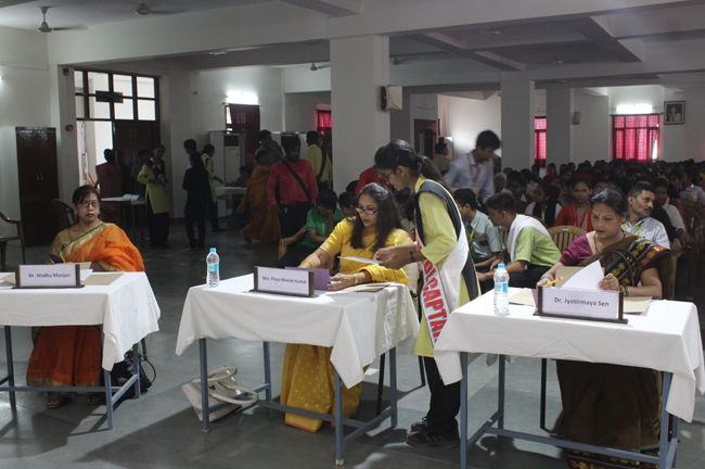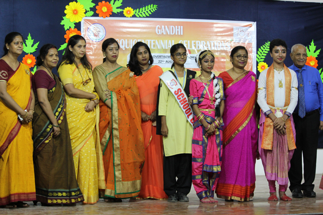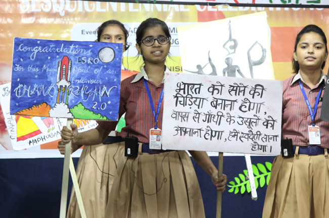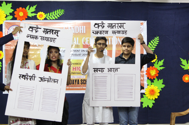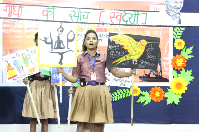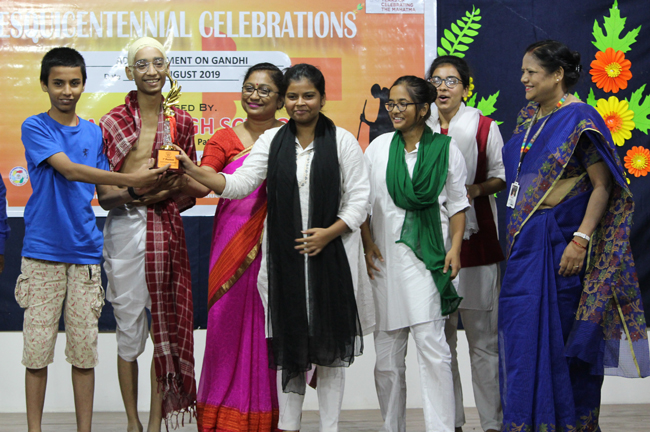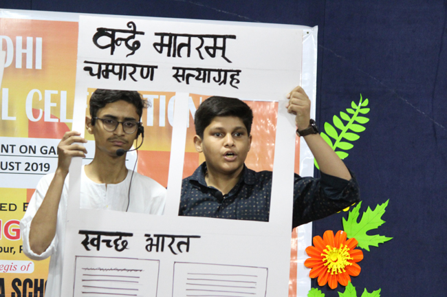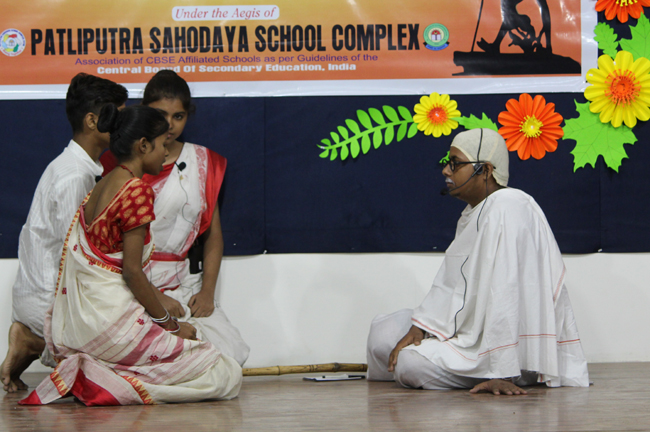 The ceremony began with the lighting of the lamp by the Director of the school, Principal, Vice Principal, President of Patliputra Sahodaya School Complex and the Judges. The Director enlightened the audience with anecdotes on Gandhiji’s life.