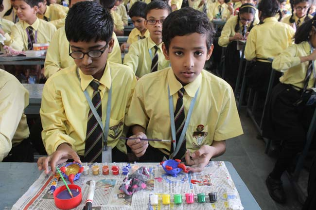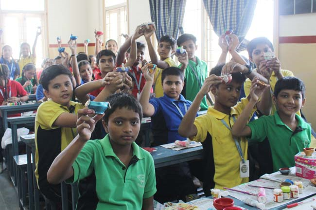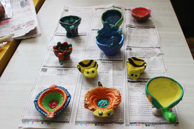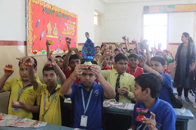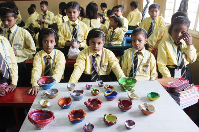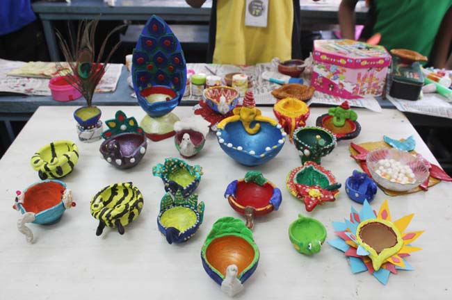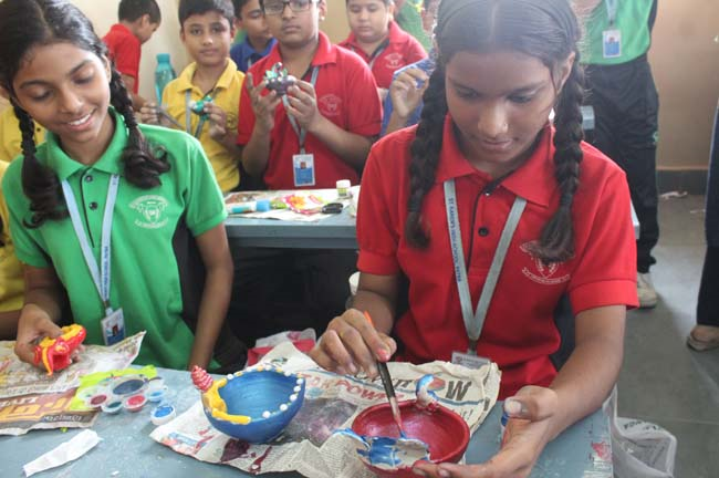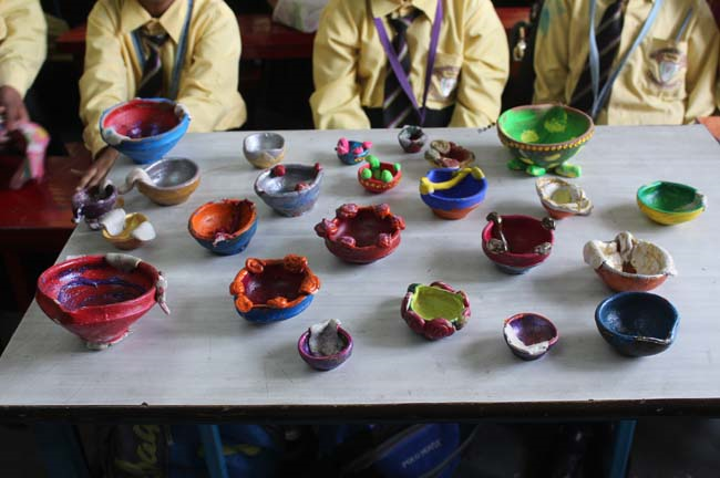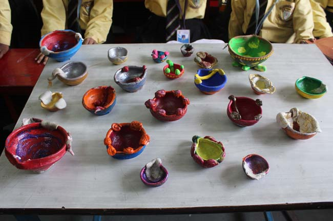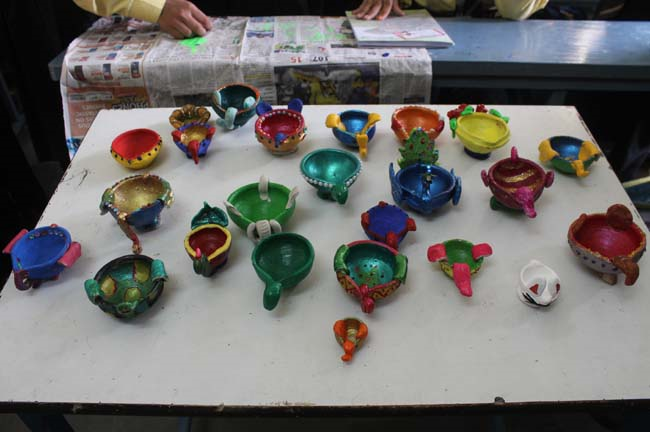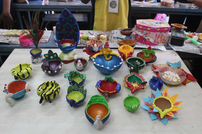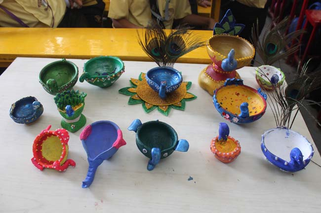 Description: With Diwali at hand, St. Karen’s High School witnessed various events organized on 18th and 24th of Oct. 2019. Students of Std – I to III participated in Diya Making Competition while Std. IV, V, IX & X got the opportunity to showcase their Rangoli making skills. Whole of the corridor and quadrangle was lit with diyas, along with the additional glory of Handmade Rangolis. The Red House won it for Std. Vth, followed by Green, Blue and Yellow. For Class IXth :-. 1st prize won by Red House,2nd prize won by Green House,3rd prize won by Yellow and Blue House.For Class IXth :-1st prize won by Green House, 2nd prize won by Yellow House,3rd prize won by Blue and Red House.