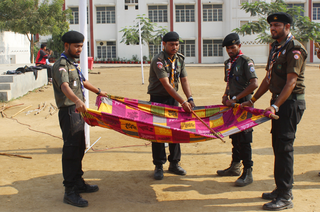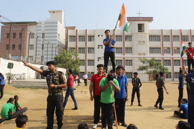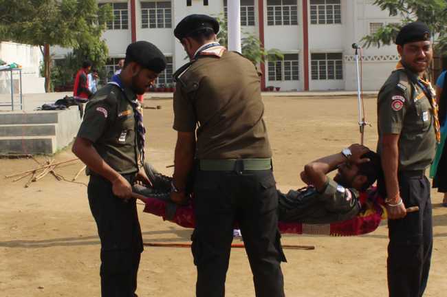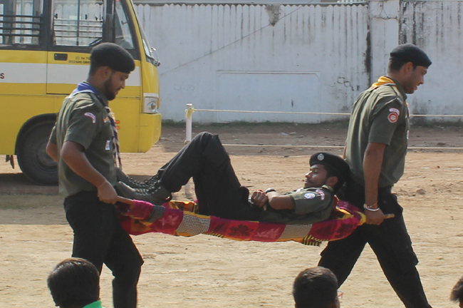 Description: A two days camp of the Scouts and guides movements and its importance was conducted for the students of class IX and XI on 29th and 30th Nov, 2019. The resource person guided the students about the emergency measures to be undertaken during natural disasters. The students were trained to make a stretcher for carrying patients.The experts discussed about the lifestyle of soldiers who live with minimum facilities in extreme conditions. The students participated enthusiastically. Students were informed about self defence mechanisms.
