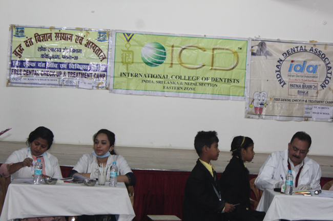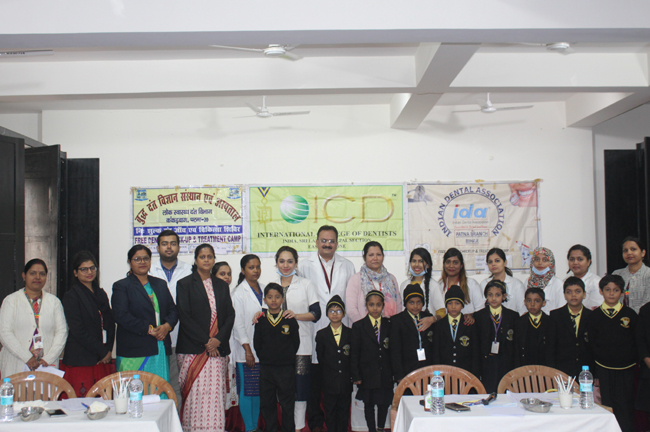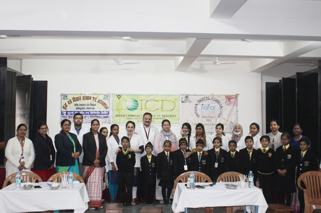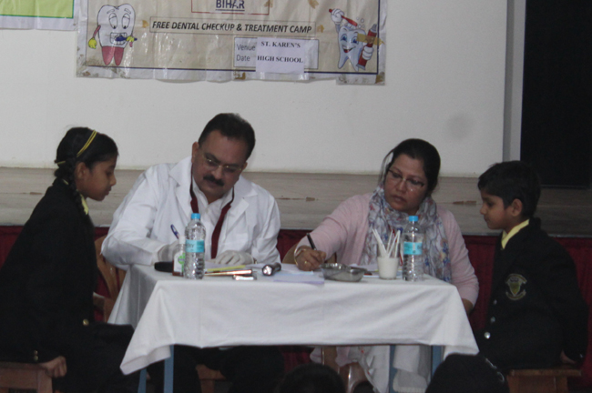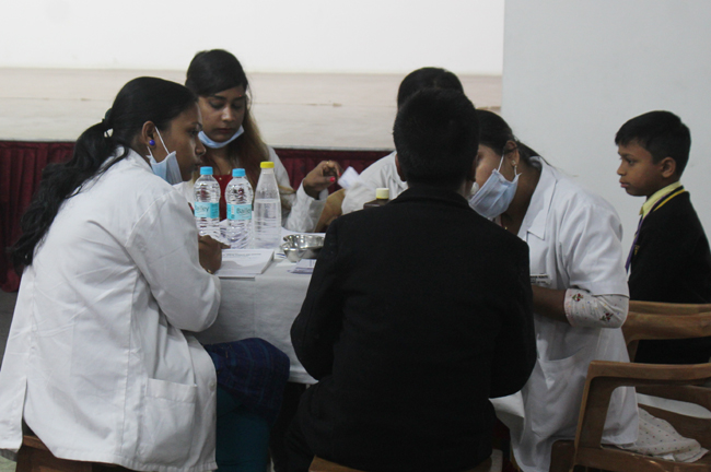A Dental Health check up camp was organized for the students of Std- I to V in our campus on 7th Feb, 2020. Dr. Amit Ram Secretary of International College of Dentists (Easter zone) and Dr. Nimmi Singh Secretary of Indian Dental Association- Patna Branch Bihar- along with their team of doctors from Buddha Institute of Dental Scientist Hospital headed the camp. They individually checked the oral hygiene each child patiently. The students understood the importance of oral health hygiene and became aware of brushing twice a day. The children were first apprehensive seeing the doctors in white coats, their minds clouded and associated them with injections and pain. They relieved when they were told that no inoculation was in place, they broke into a gleeful smile and readily lined up for the check-up. We are filled with gratitude for the entire team for sparing time from their busy schedule and imparting selfless service and our students in spreading awareness on oral hygiene.