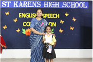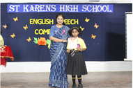 English Speech Competition was held on 25th April,2022 in Pamela Hall. The topic of the competition was ‘Self Introduction’. Students from all sections of Std. I participated in this competition. One could actually see the future leaders in the contestants. Children performed really well and made great impact on the audience by their confidence and way of presentation. They expressed themselves with eloquent expressions. The guest of honour was Mrs. Shefali Srivastava Ma’am. The competition was judged by Mrs. Manjula Bhattacharya and Mrs. Ghousia Hassan. Judges were highly impressed with the confidence of our little champs. The programme was anchored by Anadi and Humaira Azam of Std. V C very nicely. Winners of the competition were- Kushagra Mittal of Std. I D won the first prize, Abhinav of Std. I B won the second prize, Pramayara of Std. I A won the third prize. The winners were awarded certificates. Vote of thanks was offered by Mrs. Smita Nayak. It was heart warming to see amazing performances.