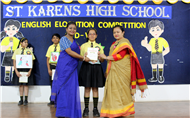 Description: English Elocution Competition was organized on 17th May,2022 at St. Karen’s High School in Pamela Hall. Theme for the competition was ‘My Mother’. Two students from each section of Std. V participated in this competition. Children spoke confidently on the topic and took great enthusiasm to speak about their mother in a poetic mood. They expressed their feeling with emotions and gratitude. The environment made us spell bound which was really heart touching for all the audience and the judges. The competition was judged by Mrs. Seema Joseph and Mrs. Juhi Paul. Judges were highly impressed with the confidence of our little champs. The programme was anchored by Sneha Kumari of Std. V A very nicely. First position was bagged by Priyanshi Jha of Std. V C, second position was secured by Adarsh Dev of Std. V B and Kriti Ranjan of Std. V B secured the third position. The winners were awarded certificates. Vote of thanks was offered by Ms. Lily Divya. Programme was well organized under the guidance of Mrs. Manjula Bhattacharya. It was heartwarming to see amazing performances.