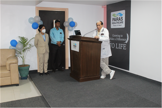 Vinod Kumar Sr. Executive PARAS HMRI, who took them on a tour of some sophisticated equipment and labs, the students were briefed about the Cath labs, function of cells and disorders in the contact inhibition mechanism which causes tumor .