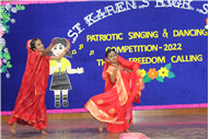 Patriotic Dance and song competition was organized on Monday 8th Aug, 2022 for Std. III and IV in Pamela Hall. The vivacious dancers set the floor on fire with their energetic dance performances and the young aspiring singers filled the air with the tune and lyrics of the beautiful thought provoking Indian Patriotic songs. The Principal and co-ordinators congratulated the winners and appreciated the performance of the children and also encouraged them to participate more in such competitions to enhance their talents. Our winners are in song competition Std. IV 1st prize- Ashwin Kumar of Std. IV A, Sonal Kumari of Std. IV A, Samridhi Kumari of Std. IV A and Palak Jha of Std. IV A, 2nd prize- Aradhya Prakash of Std. IV B, Anant of Std. IV B, Aradhya of Std. IV B and Parnika Pakhi of Std. IV B and the 3rd prize- Shadman Alam of Std. IV C,Aarnav Raj of Std. IV C, Ansh Jha of Std. IV C and Aadya Veer of Std. IV C. Our winner are in Dance Competition 1st prize- Trishna of Std. III C, Shivam of Std. III C, Aditya Singh of Std. III C and Arna of Std. III C,2nd prize- Aaradhya Soni of Std. III D, Saumya Kumari of Std. III D, Aditi Jha of Std. III D and Sanvi Singh of Std. III D and the 3rd prize- Advit Upadhyay of Std. III B, Shreshth of Std. III B, Shivani of Std. III B and Vishwatmika of Std. III B.