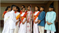 Description: 'Victory of good over evil', this message was conveyed by the students of Primary section in a special assembly conducted on the eve of Durga puja on 5th October.A student dressed beautifully as goddess Durga had brought forth the beauty of the festival. It was then followed by a speech and songs.