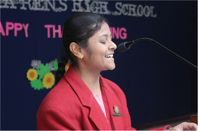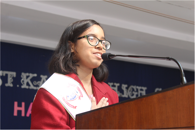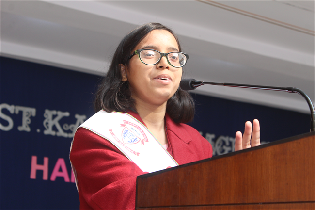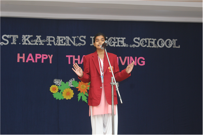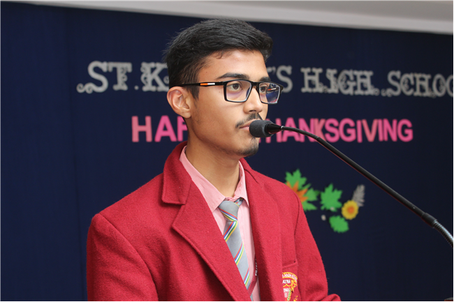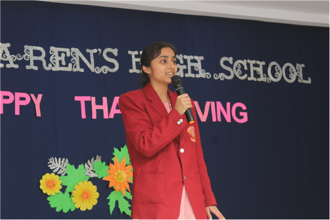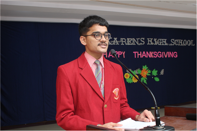Description: The gift of gratitude is most beautiful as it makes us aware that our life is already overflowing. Thanks giving ceremony was organized in the premises of St. Karen's high school to honor the institution and its members whose hard work turned small saplings into trees with dense branches spread all around. The special appearance at the event was of the honorable Director sir, principal ma'am, co-ordinators Mrs. Subhadra, and Mrs. Shefali Srivastava. The ceremony was hosted by Aastha Shreshtha and Anmol Raj initiated with a welcome dance by Sarthak Singh Sagar followed by the recitation of a poem by Aayushi. The famous Hindi poem - Mai tufanon ka aadi hun by Gopaldas boosted the morale of students for their fresh start after std.10. The standup comedy by Anna Pradhan and Harshit was the center of attraction at the event. The melodious mashup song presented by Komal and Akshat along with the motivational track Aashaiyen by Anamika grabbed the attention of the crowd. The performance by Vaishnavi, Alisha, and Piyush of the Biology department was splendid as it boosted the level of spirit of the audience. The biggest slice of the program was Karen's stock in which the students elucidated their journey at St. Karen's high school. The school president Chaitanya Prabhakar and secretary Vandita Vidisha from the Science stream shared their experience at St. Karen's high school. Their words were a profound source of motivation for the students of std.10 and the emotional touch of the speech left the crowd speechless. The sweet talks by Harsh, Ashutosh, Simran, Samar, Adip Jamal and Riya Verma left the audience emotional with rollings tears in their eyes. The event reached its end with an inspirational speech by the honorable director sir and principal ma'am. Their words motivated the students to move forward in their life despite hurdles and struggles.