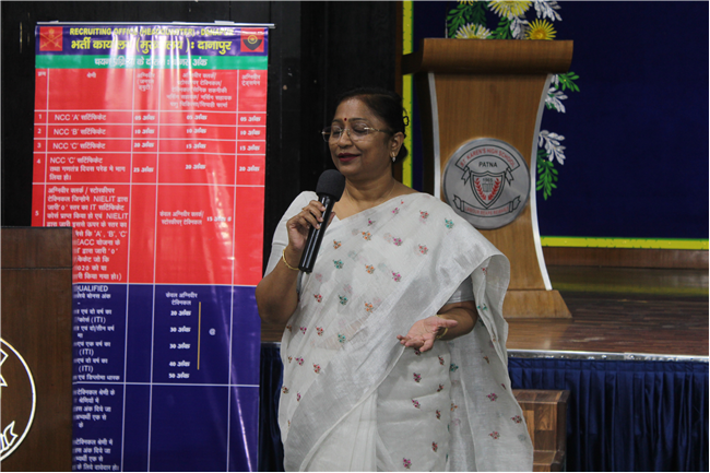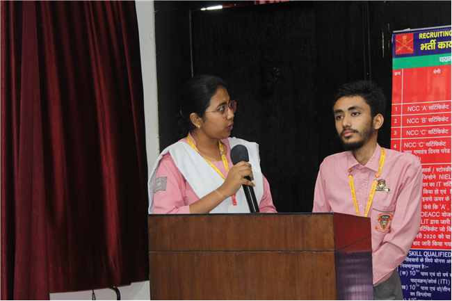 An in depth knowledge about the Indian Army was given to the students. A variety of related topics were discussed. The presentation started with the qualities and eligibility needed by the students to be accepted into the army. Then it continued with the benefits received by it and necessary tips and steps to be taken to pass the gruelling entrance examinations. Finally, the presentation concluded with the motivational words of the colonel.
