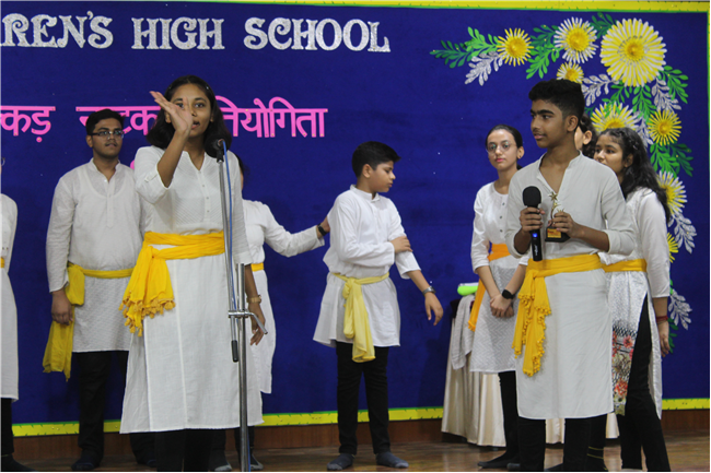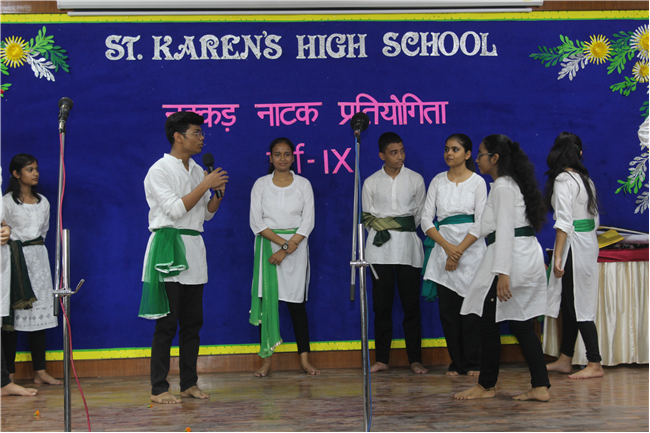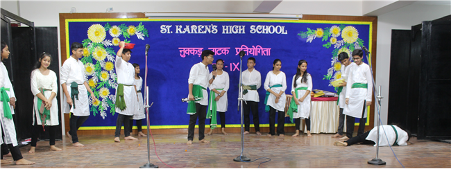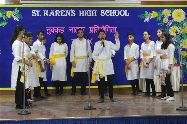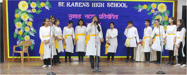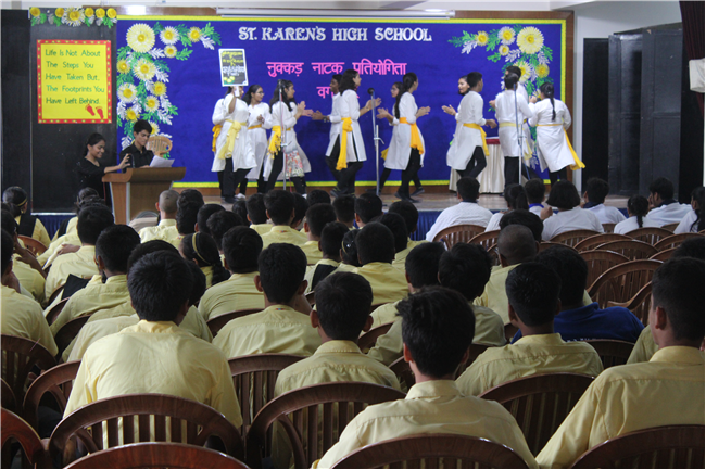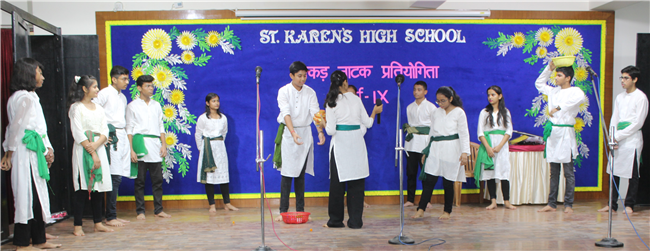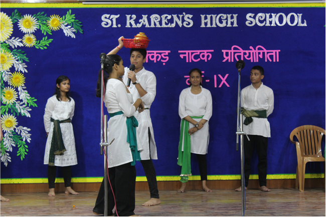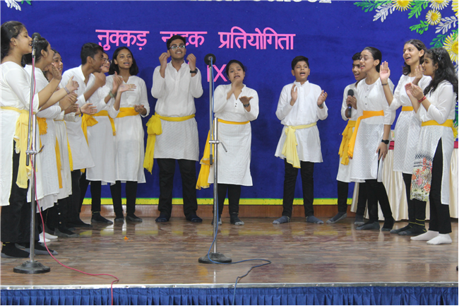 Description: It is human nature to appreciate something different from ordinary and it is only natural that such efforts are shared among groups. Nukkad Natak can increase reach as well as awareness. A Hindi Nukkad Natak competition was organised by the students of Class 9 consisting of all the four houses in Pamela Hall on 7th July 2023. The first prize was bagged by the Green House team depicting Mahila Shashaktikaran. The second prize went to Yellow House team which showcased the theme 'Bacchon ke sapne ya maa baap ki Ummiden. The third prize went to Blue House team with the theme of 'Bhrashtachar'. The consolation prize was awarded to the Red House team showcasing the theme 'Netaon ki beimani karti desh ka aaghat'. The competition was adjudged by Mrs. Sujaya Thakur and Mrs. Eline Ronald. The anchors Anushka Kumari and Sanskar Bhushan from 9D performed a commendable job by conducting the event very efficiently. There were altogether 54 participants. The event was well co-ordinated by Mrs. Isabella Paul.