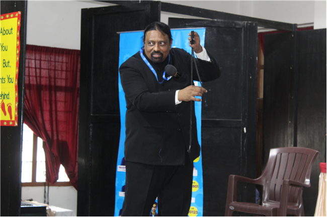 Description: Dear Parents, Students of Std 9th and std 10th at St Karen’s High School had an important value training session from a renowned “Value Communication Trainer” Mr M.J. Rajesh Fernando (12 international world record holder and Guinness World record holder New Category) and Abhinav Prakash (Internationally Certified Career coach). Through his illusions Mr M.J. Rajesh Fernando kept students gravitated towards him and he ensured touching the hearts of students and bringing in them the values and respect towards parents, teachers and the Nation. He provided a lot of inspiring inputs with regards to values of life, ‘Hard Work’ and ‘Success Mantras’. Mr. Abhinav Prakash provided important guidelines and strategies to scale and rise high, in Career and in Life. The Session was organised under the Corporate Social Responsibility of Aakash BYJU'S Institute, Patna. Regards, Vice Principal