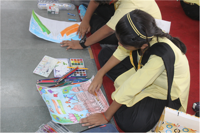 On 14th of August 2023, a painting competition was held in our school for std.6 -12. The topic was ‘My India, My Pride’. This competition was organised on the occasion of Independence day to bring awareness in the children of their rich culture and heritage and feel proud of it. Children in huge number participated in it and made beautiful paintings of the famous buildings and monuments. Their paintings depicted the rich and vibrant culture of India. It was conducted by the art teachers.