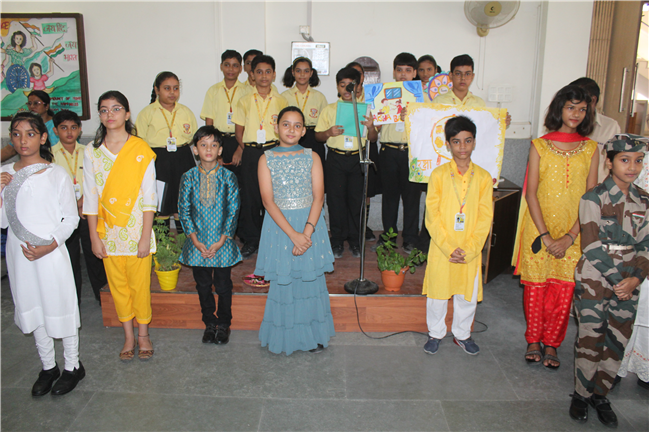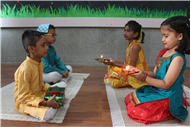Description: Std. 2 and 5 students jointly organized a special assembly on Raksha Bandhan, celebrating the timeless bond between brothers and sisters. A symbolic thali was prepared where girls tied Rakhis, symbolizing the endearing relationship between siblings. They eloquently spoke about the festival's significance, setting the tone for this memorable day. It was emphasized that this bond unites both brothers and sisters, fostering a mutual pledge of love and care. In a heartwarming gesture, all the school children crafted beautiful Rakhis to mark this auspicious occasion and shared them with the military personnel at the "cantonment area." The soldiers were deeply touched by this surprise from our students. Additionally, std. 5 students dressed as Mother Earth and symbolically tied a Rakhi to the moon, commemorating the successful landing of Chandrayaan 3. They also highlighted the importance of tree conservation, with girls tying Rakhis to trees to protect our Mother Earth. The assembly concluded with the entire class singing the popular song "Phoolon ka Taaron Ka," with enthusiastic support from the teachers, who also imparted valuable lessons during the assembly