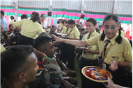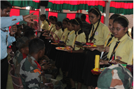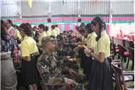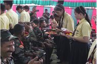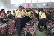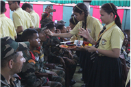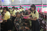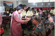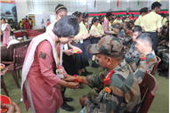 The students tied rakhis on the wrist of the soldiers. In addition to tying rakhis the students gave gifts, chocolates and sweets to the soldiers. These personalised gestures conveyed the students gratitude and respect for the soldiers unwavering commitment to safeguard the Nation's security.