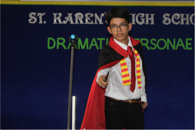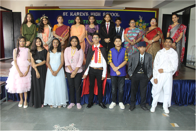A character dramatization competition was held for the students of std. 7 on Tuesday, 29th August2023 in Pamela Hall. Children came dressed up in their favorite literary characters like Harry Potter, Mare Anthony, Helena, Hermione Granger, etc. The passionate enactments were appreciated by everyone present. The revered judge’s Debleena Miss and Seema R Joseph congratulated the students on their wonderful performance and encouraged them to showcase their innate talent. The winners were as follows: - (1st – Aashna Kashyap), (2nd –Anjali Sawan), (3rd – Mandavi Singh and Sakaar Raman).