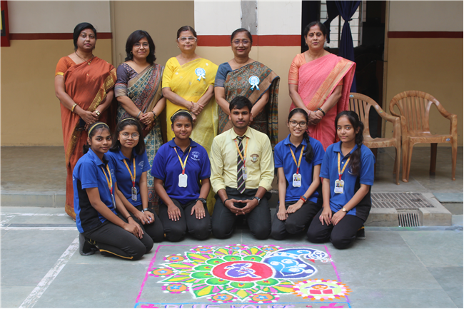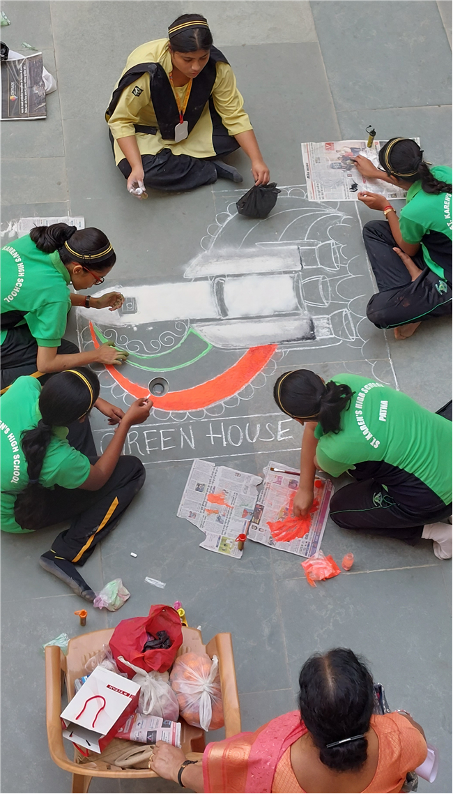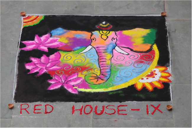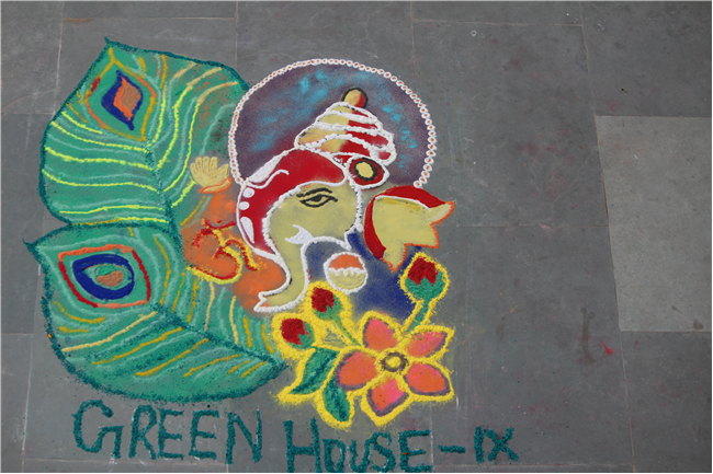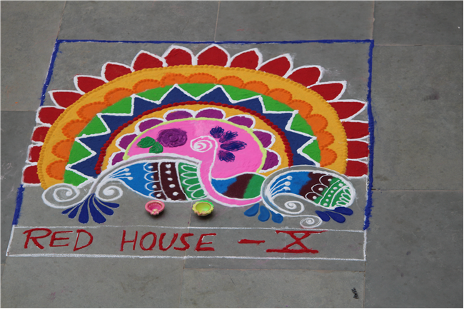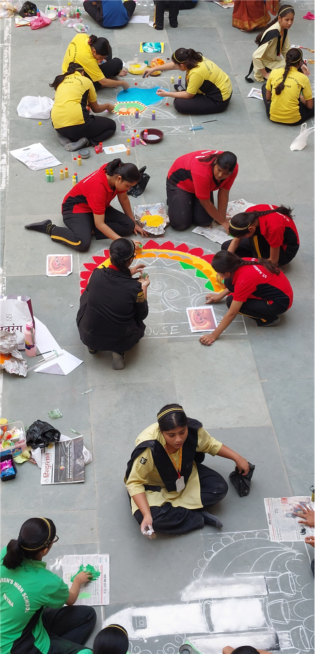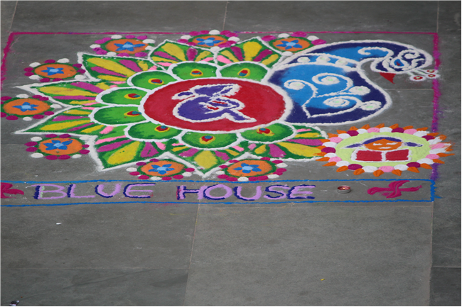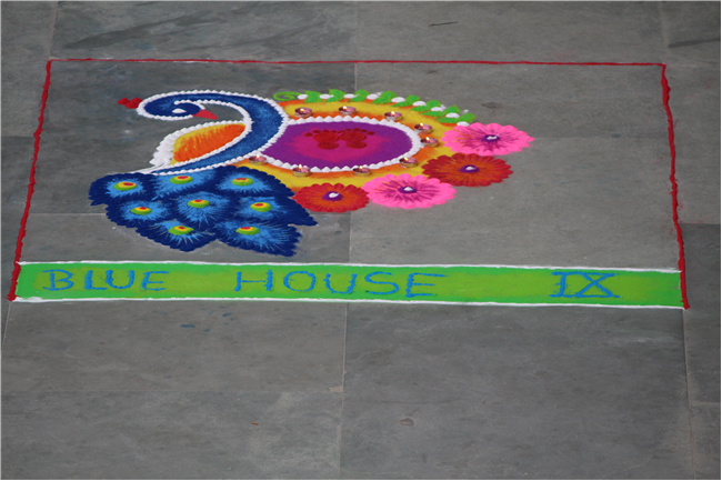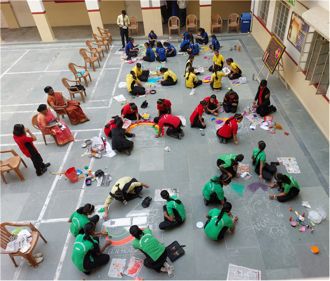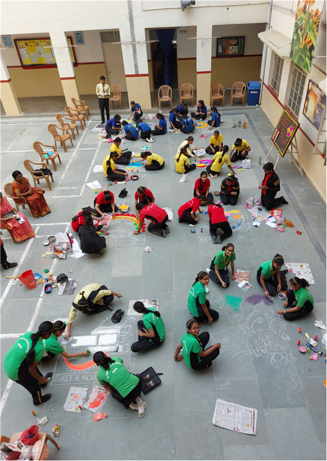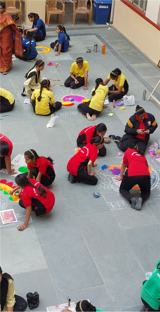 A Rangoli Making competition was held on 9th November, 2023 in the quadrangle for students of classes 9 and 10. Students actively participated in the competition & showcased their creativity. The Rangoli made by them were colorful & innovative. The Rangoli displayed manifold patterns filled with bright, pleasing colors. The students learn and practiced a traditional form of art. Principal Ma’am appreciated the students for their efforts.