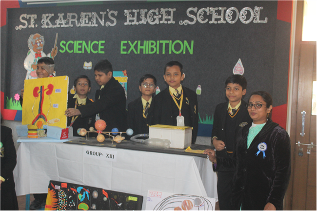 Description: A Science Exhibition was organised for the students of Std.4 and 5 under the guidance of their science teachers. 70 models were demonstrated and presented by the children. The idea behind this exhibition was : 1. To build teamwork 2. Self Motivation and to educate and engage students and individuals by showcasing and explaining concepts, discoveries, innovations, and experiments. The students were very enthusiastic and their hard work was appreciated by Principal Ma'am, Vice - Principal Sir, Subhadra Ma'am, Sumita Ma'am and science teachers.