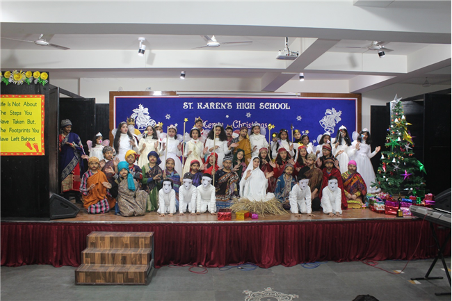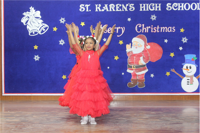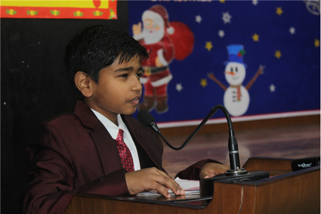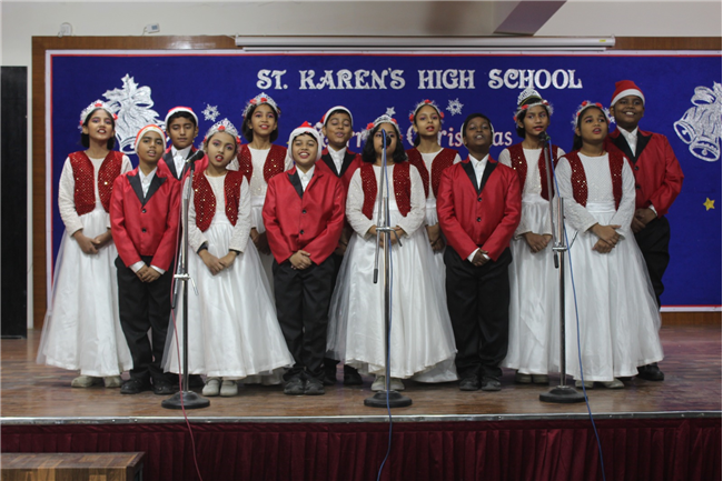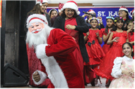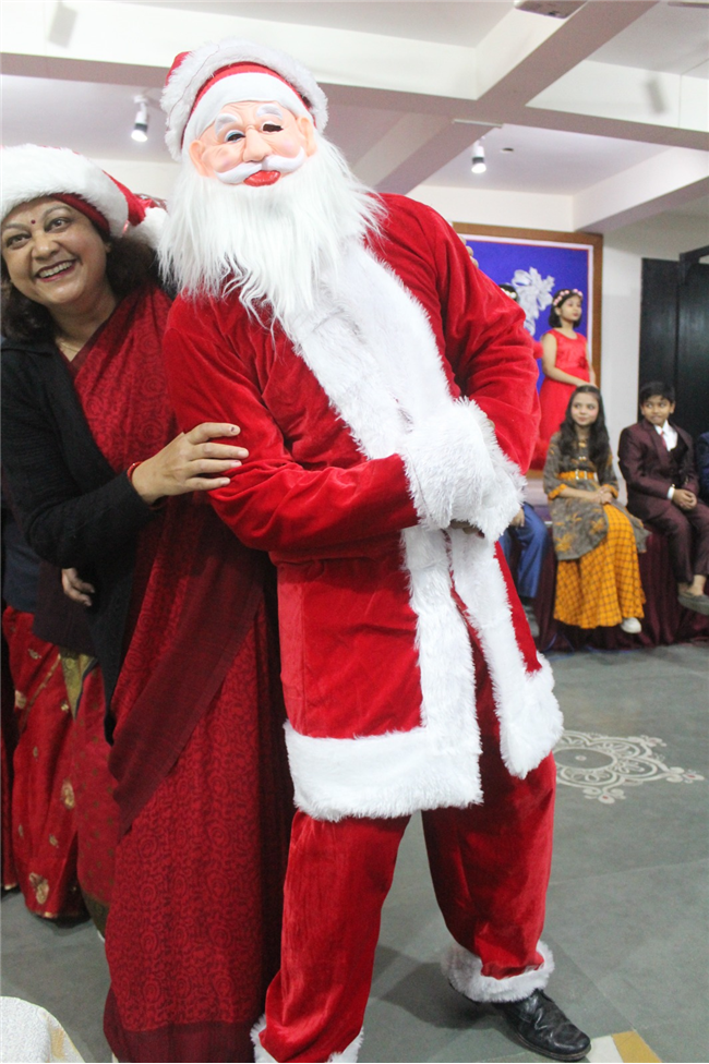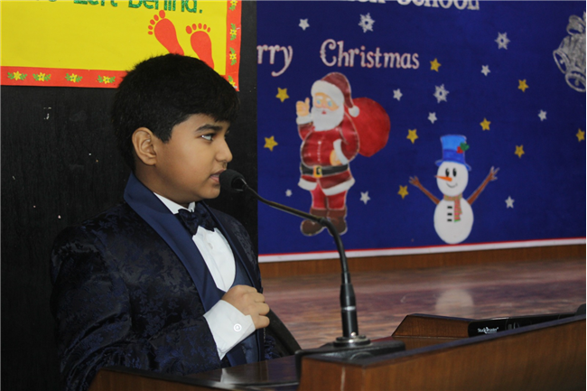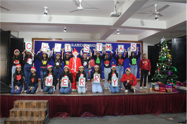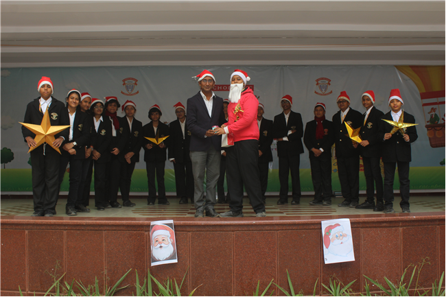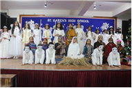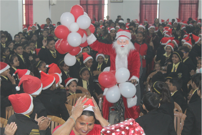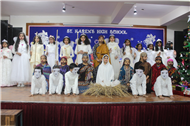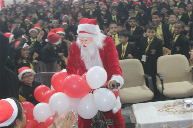 A special assembly was conducted by the students of std.6, 7, 9 and the Primary wing on 20th, 21st and 22nd December respectively to celebrate and spread the spirit of Christmas. The senior students, dressed gaily performed a skit and sang carol songs. The little ones of Primary also presented a vibrant show comprising of dances, Christmas carols and the Nativity play. At the end of the programme, Santa entered on his beautifully decked up bicycle and blessed the children. Their excitement knew no bounds as they saw Santa and received chocolates from him.
