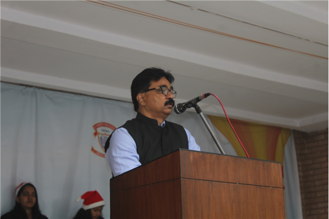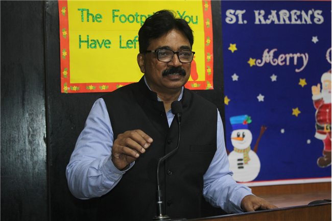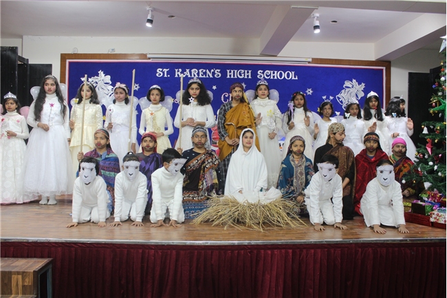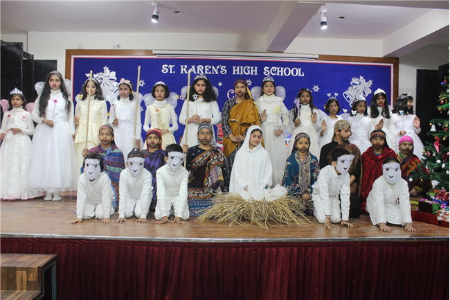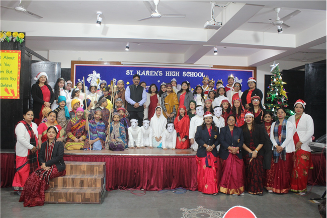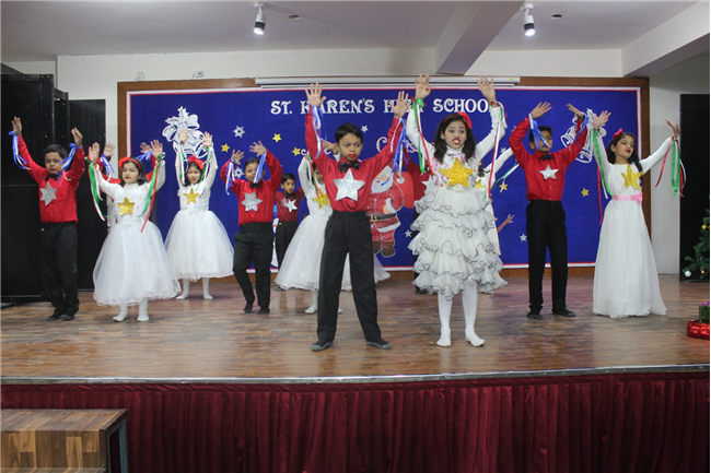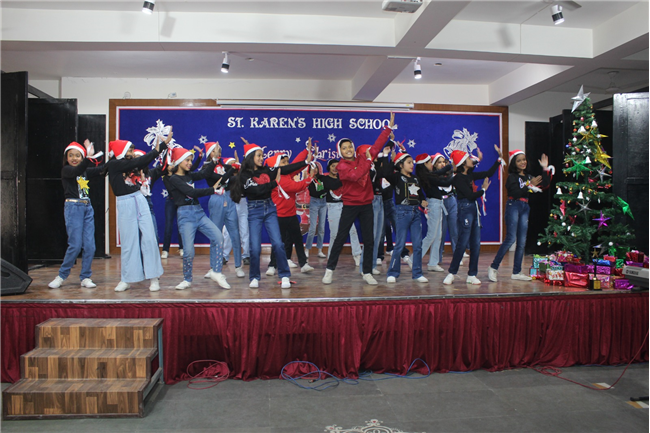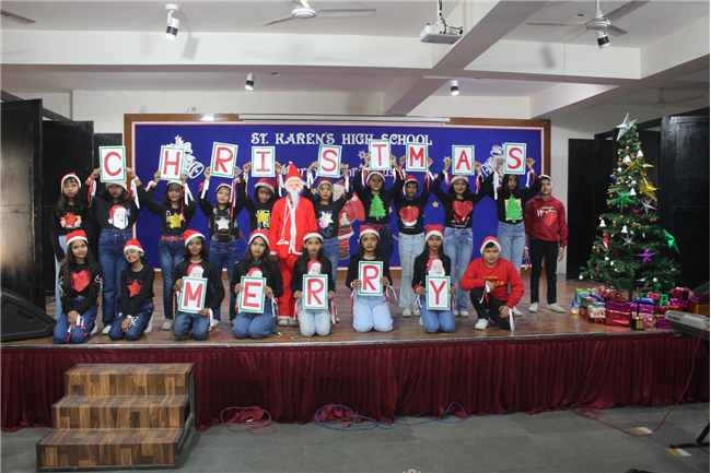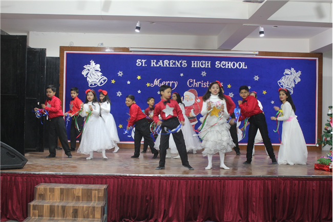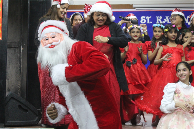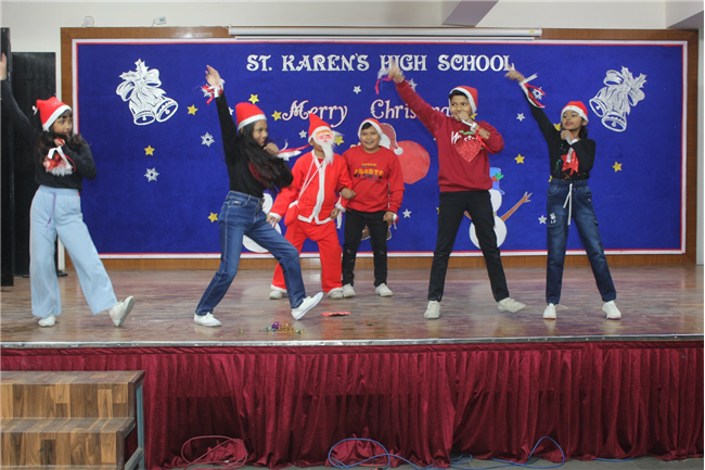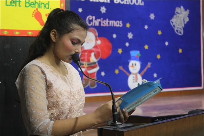 A special assembly was conducted by the students of std.6, 7, 9 and the Primary wing on 20th, 21st and 22nd December respectively to celebrate and spread the spirit of Christmas. The senior students, dressed gaily performed a skit and sang carol songs. The little ones of Primary also presented a vibrant show comprising of dances, Christmas carols and the Nativity play. At the end of the programme, Santa entered on his beautifully decked up bicycle and blessed the children. Their excitement knew no bounds as they saw Santa and received chocolates from him.