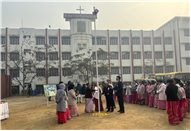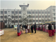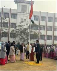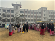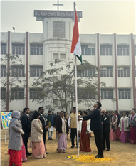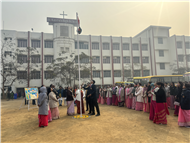 Description: The 75th Republic day was celebrated at St. Karen's high school with great enthusiasm. The programme started with the hoisting of the tricolour by Director Sir, Shefali Ma'am and Seema Ma'am followed by the national anthem. Richa Thakur Ma'am in her welcome speech highlighted the importance of the day by narrating a poem in Maithili followed by a patriotic song ‘Ae mere watan ke logon’ sung by Papiya Ma'am. Next was a speech in Hindi by Rakhi Ma'am in which she spoke about the sacrifice of our freedom fighters and the contribution of our leaders in making of the Constitution. Preeti Ma'am spoke about Major Somnath Sharma one of the recipients of Paramvir Chakra followed by patriotic song sung by the students. Next came the much-awaited programme of the day conducted by Principal Ma’am - the Quiz in which everyone- students, teachers, office staff and even the support staff participated eagerly. Our Director Sir addressed the gathering on this occasion and appreciated the diversity in our country and also asked the students and teachers to have ambition in life and work on it in a planned way to be successful. Shefali Ma'am motivated the gathering with her words of inspiration. The programme ended with a vote of thanks given by Vice Principal Sir.