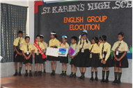 English Elocution Competition was organized on 20th April 2024 at St. Karen’s High School in Primary Hall. Theme of the competition was “school”. Four children from each section of Std-2 participated in the competition. Children spoke confidently on the topic. They expressed their feelings with emotion and gratitude. Everyone was touched by their speeches. Judges were highly impressed with the performance of our little champions.