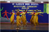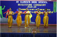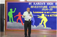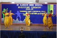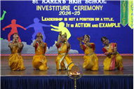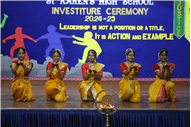 “Effective leadership is not about making speeches or being liked; leadership is defined by results not attributes."-Peter Drucker . St.Karen's High School creates leaders who excel in their lives as well. Investiture ceremony is one of the historical occasions when a school entrusts faith, hope and responsibility with the newly appointed school cabinet. This ceremony signifies the confidence and reliance that the school invests in the newly elected office bearers. St. Karen's High School Investiture Ceremony was conducted in Pamela Hall on 7th May 2024. The event commenced with welcoming the Chief Guest with a sapling followed by lighting of the ceremonial lamp. Thereafter the guests were welcomed with a welcome dance.