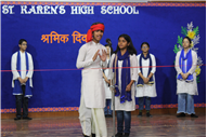 Description: St. Karen’s High school celebrated Labour Day with great fervour to acknowledge the contribution of all those who silently contribute to the smooth functioning of the school every day. The programme commenced with a prayer song followed by the lighting of the lamp. A welcome dance was organized to welcome the stars for the day – Our support staff. Our beloved Director sir blessed all the support staff with his motivating speech. A song was sung by the choir followed by fancy dress presentation by Primary students. Shriparna Shandilya from 10 C recited a poem highlighting the contribution of our indispensable support staff. A nukkad natak based on todays theme was also staged by the students. Principal Ma’am praised them for their relentless effort and they were given tokens of appreciation. Vote of thanks was proposed by our co-ordinator , Sumita Ma’am.