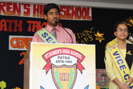 Description: This was the most auspicious celebration in the new session where the school formally entrusts the newly selected members of student council with their powers and positions. Miss Farah Kazim started the event with a speech welcoming the Director of the school Mr. D.P Galstaun, the principal Mrs. Seema Singh, the Vice-Principal Mrs. Anjana James, teachers and the students. The council members received their responsibilities with Oath.