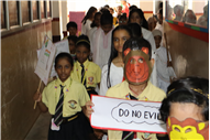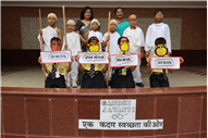 A special assembly was conducted by the students of std.3 to 7. Children dressed up as Mahatma Gandhi and talked about his ideologies. The students presented songs, dances and shorts plays followed by Swachh Bharat Abhiyan where the students of std.1, 2 , 3 and 7 moved around the classes and spread awareness to keep the surrounding clean.