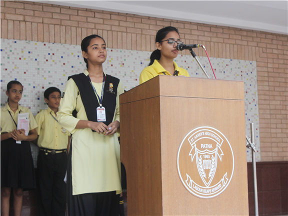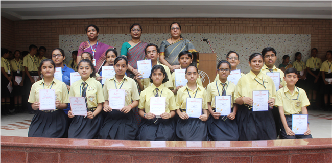 The grand occasion of council members ceremony took place on 7th July, 2017. Badges were handed over for the different posts to take care of the school disciple. The council members team was formed from the students of class – 5 and the monitor badges were given to the monitors of Std 6,7,8,9 and 10 by their respective class teachers during the morning assembly.The ceremony was presided by the Principal Mrs. Seema Singh and Vice Principal Mrs. Anjana James. It ended with an oath taking.