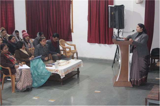 Description: An in-house training program was held at Pamella Hall, St. Karen's High School, focusing on the National Curriculum Framework for School Education 2023 on 4th Jan 2025. The session, led by Vice Principal Mr. Sanjay Joseph and Ms. Shalini Singh, catered to teachers from Std 1 to Std 12. Every aspect of the NCF was thoroughly explained, making the session insightful and enriching for all participants. The event began with a prayer song by Robert Sir and a prayer led by Principal Seema Singh. The session was further enhanced by a yoga session conducted by Physical Education teachers Manoj Sir, Deepak Sir, and Ms. Neha Singh, promoting physical well-being alongside academic growth.
