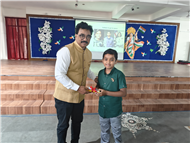 The celebration featured a captivating play by primary students titled "Swachta Abhiyan" highlighting the importance of maintaining cleanliness in society. The campus resonated with powerful student speeches that moved everyone, touching poetries and  soul-stirring group songs by the 4 houses. Adding to the excitement, Principal Mrs. Seema Singh conducted an engaging quiz that kept everyone on their toes and sparked friendly competition among students.