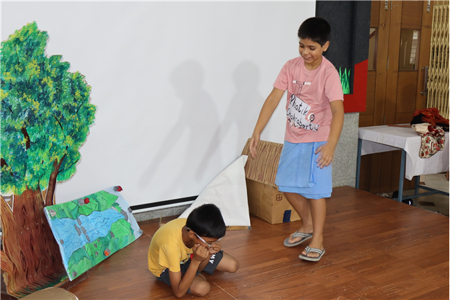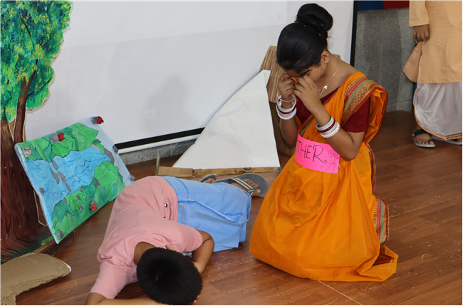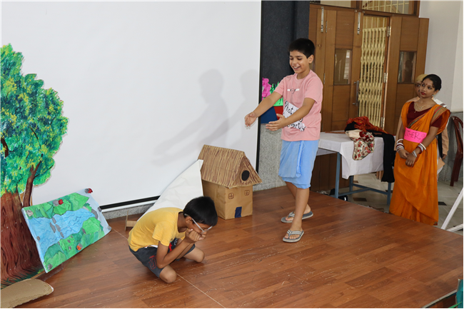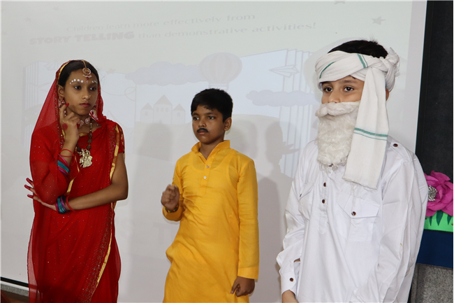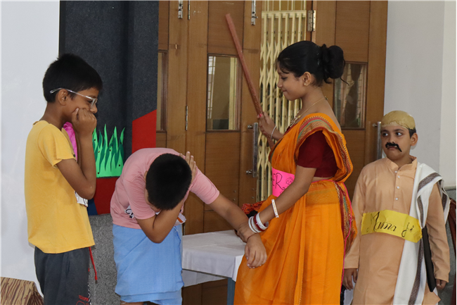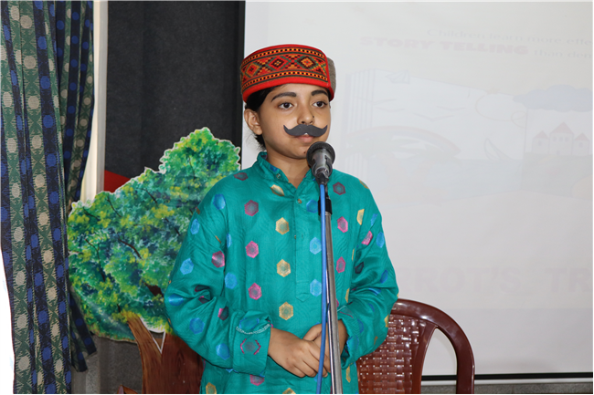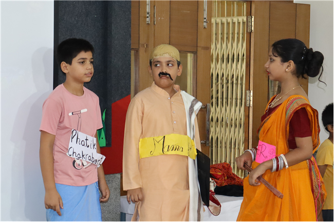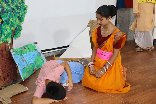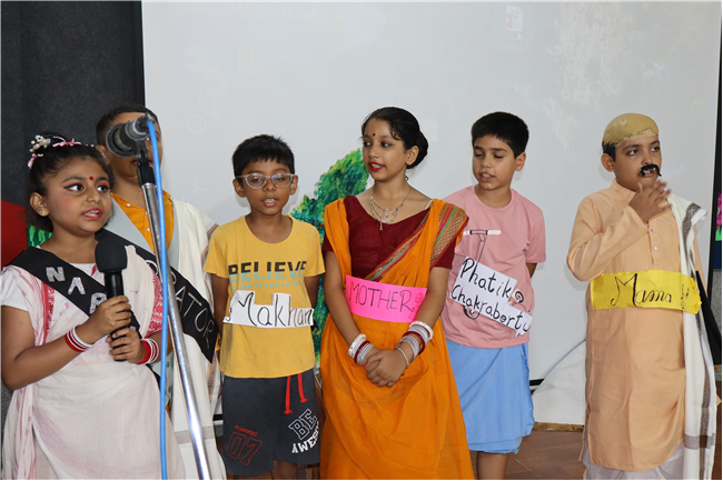 Description: Students participated in a story telling competition narrating and enacting the stories of Rabindranath Tagore. The new approach of story telling was presented by class 4 students in the Primary Hall on 18th July 2025 . The acts focused on popular stories like ‘ Kabuliwala, Chutti, Postman , The Parrot’s Training etc .The performance and the costumes of the students were much appreciated .
