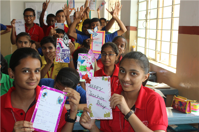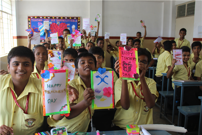 Description: The Students from classes I –X enthusiastically participated in the card making competition. They later presented these cards to their teachers.