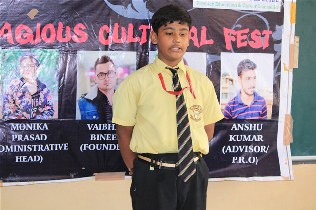 Description: Universal Pacific 2.0 organised a cultural event in the school where over 555 students participated. The categories were dancing,singing,speech and painting both in junior and senior group. Many students won prizes and awards.