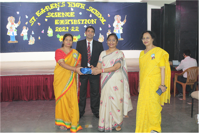 Description: St. Karen’s High School, Gola Road, organized a Science Exhibition on the 20th of November, 2021 with the theme “Go Green, Save Our Earth”. The Honorable Director Mr.D.P Galstaun and other dignitaries inaugurated the programme with lamp ceremony and appreciated the little scientists for their innovative projects. The exhibition had a large number of students and teachers participating and collaborating hand in hand to make the event successful. The main attractions of the exhibition were on modern technology, Alexa, Oxygen Concentrator, Robotics, Automation, Defence Security, Hyperloop, Smoke Absorber etc. The Principal of the organization ,Mrs. Seema Singh, congratulated the whole Science Department and the students for their enthusiasm and creativity.