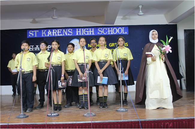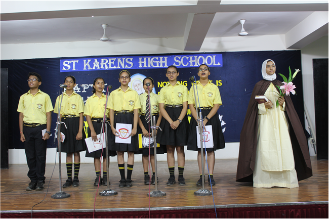 A special assembly was conducted by Primary wing on the occasion of Feast Day. The assembly started with a prayer dance by Std.2 which was prepared by Mrs. Smita Nayak and Juhi Paul followed by Bible reading which was done by Shreyanshi Kumari of Std. 5A. Special Prayer was done by Sneha Kumari of Std. 5 A. Adarsh of Std. 5 B delivered a speech on St. Catherine of Siena. The school choir presented a hymn ‘Open the eyes’ on this pious occasion, thought for the Day was "Prayer enriches our mind and soul" which was said by Swara of Std. 2 D. Last but not the least a quiz was conducted by Sangyan Mishra of Std. 5 A. The programme was concluded by a song “ Happy Feast Day” by the teachers of Primary wing.