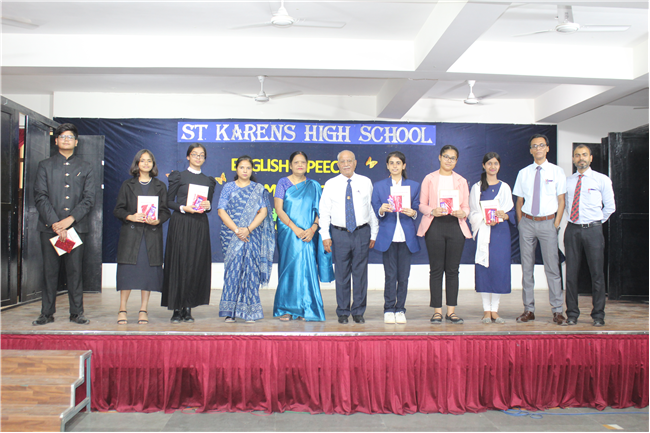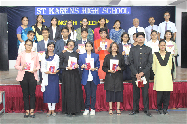 Description: Art of speech is a distillation of micro-revolutions and mega-ideas enmeshed with enthusiastic delivery, twinkling eyes and raging confidence. And the speech competition on 25th April,2022 represented a wider canvas of all these attributes. The students of Std. Xth stepped into the shoes of Kamla Harris, Swami Vivekanand, Queen Elizabeth, Einstein and many others to reincarnate their words with their own energy. The vitality in their booming words was palpable in Pamela Hall, where the audience comprising of Honourable Director Sir, Shefali Miss, Principal ma’am, Aditya sir (Judge), P.C Das Sir (Judge) and students witnessed the event. Mahi Sinha of Std. X H and Aadya of Std. X D were declared as the winners while Ankit Das of Std X G and Mithanshi Vasta of Std X J were declared as the first runner up. Samridhi of Std. X C and Sharwani Sanjeeve of Std X G were declared as the second runner up. The contest, which was carefully curated by Mrs. Manju Gupta, came to an end after a vote of thanks by the Principal, Mrs. Seema Singh.
