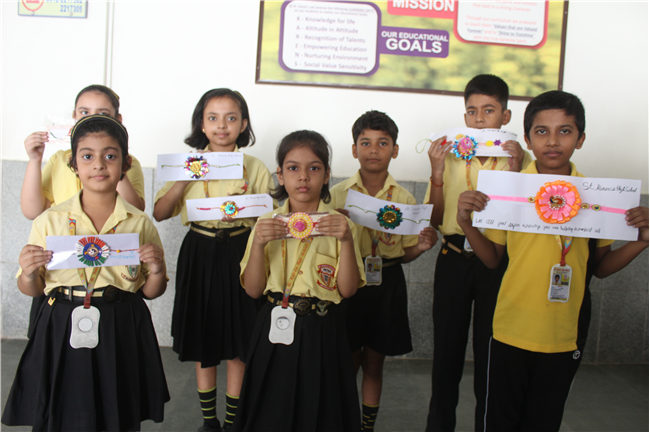 On the eve of Raksha Bandhan, celebrated on August 29, 2023, students from grades 1 to 8 engaged in a delightful Rakhi-making activity within their classrooms. With boundless imagination and creativity, the children crafted beautiful Rakhis using various materials they brought for decoration. Following the creation of the Rakhis, students in grades 1 to 5 penned heartfelt messages for their brothers. The primary objective of this activity was to instill the values of learning and fostering respect for the unique bond between brothers and sisters.