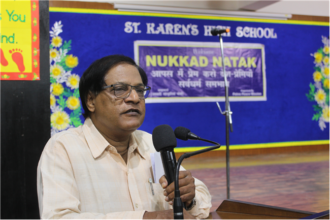 Description: A captivating and thought-provoking "Nukkad Natak" was presented by the talented team of Father Jose Kalapura at St. Karen's High School on 29th September 2023. The performance, which took place for students of standards 8 and 7, centered around the vital theme of "Inter-religious Harmony and Brotherhood." Through their powerful storytelling and impactful acting, the team conveyed a message of unity, respect, and understanding among different faiths and communities. The performance left a lasting impression on the young audience, emphasizing the importance of fostering inter-religious harmony and brotherhood in our diverse and interconnected world. St. Karen's High School commends Father Jose Kalapura and the team for their inspiring and educational presentation.